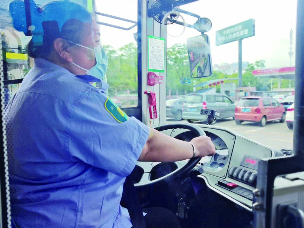 罗利正在全神贯注地驾驶着公交车。 株洲日报全媒体记者/何春林 摄