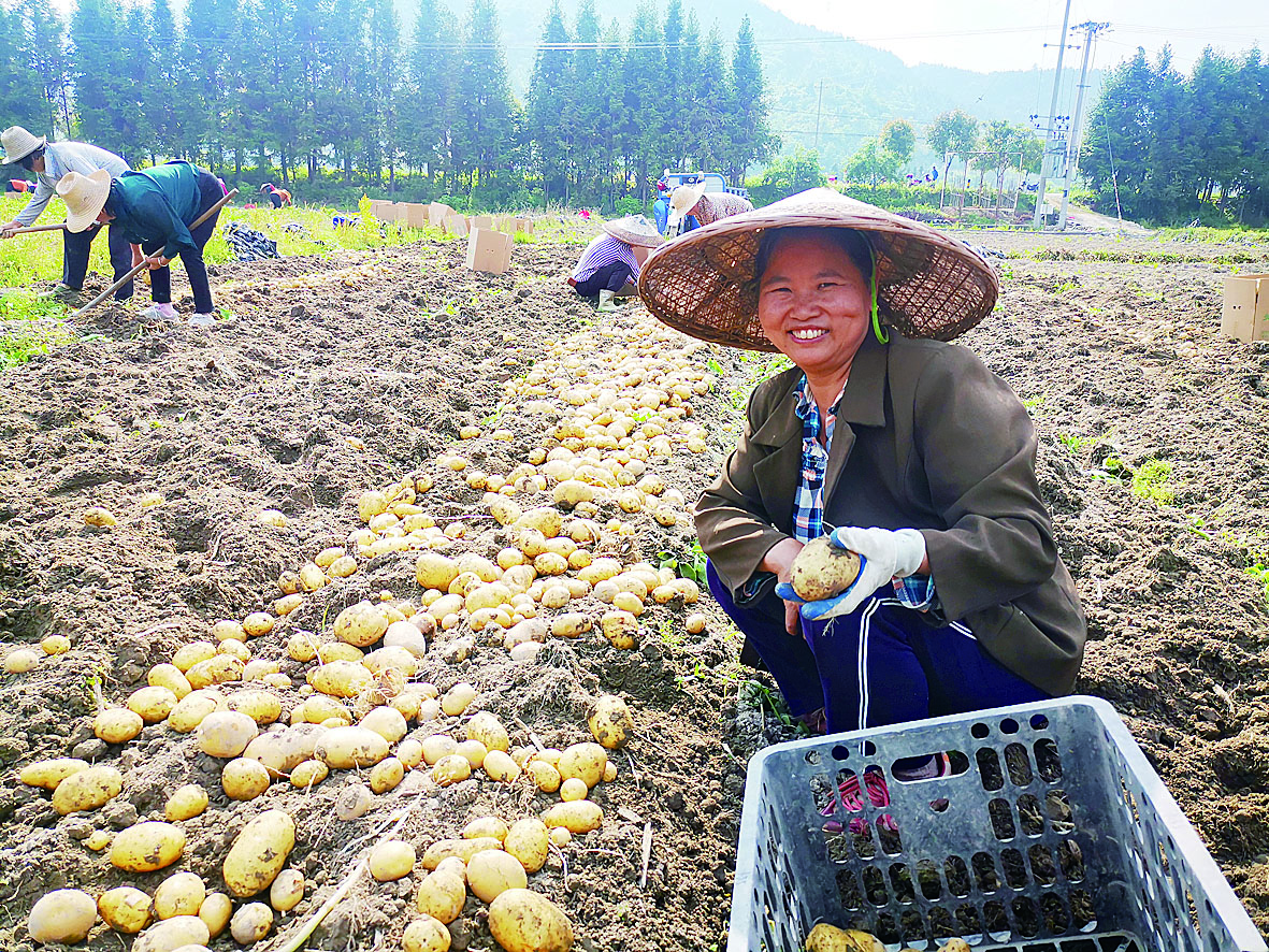 又到土豆丰收季。5月6日,炎陵县水口镇村的水西生态农业科技发展有限公司的土豆种植基地,随着村民们用锄头翻动泥土,一个个土豆破土而出,村民忙着收捡,脸上洋溢着收获的喜悦。