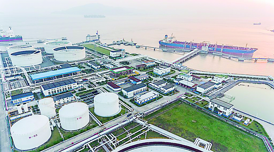 毗邻国际航道,往来如梭的船舶,陆续停靠在舟山的深水良港加油锚地上,等待加注保税船用燃料油;鱼山岛上的绿色石化基地,一座钢铁“不夜之城”拔地而起,打破了日韩等国对芳烃、乙烯等重要石化原料的垄断;在六横岛上的液化天然气接收站,数以万计的清洁能源,正源源不断向长三角地区输出……