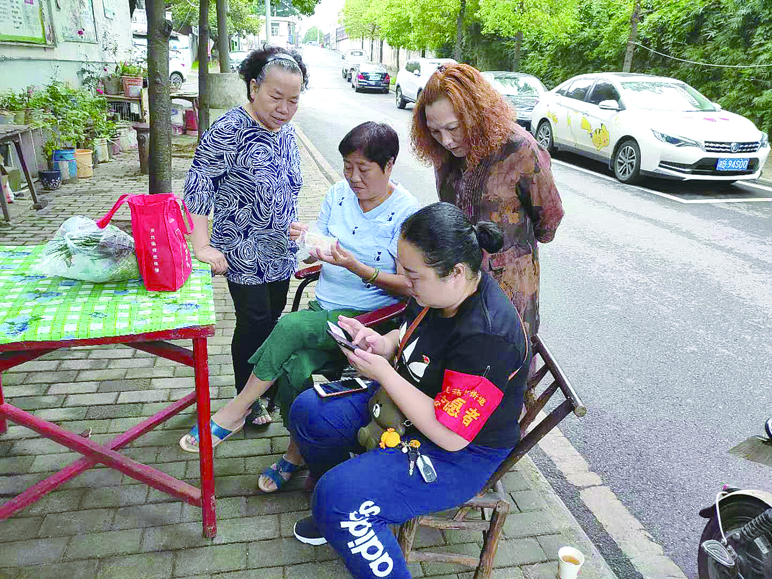 网格员许中玉向辖区群众宣传推广“国家反诈中心”App。 通讯员 供图