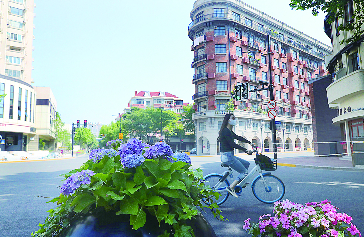 5月17日,市民骑车从武康大楼前经过。新华社发