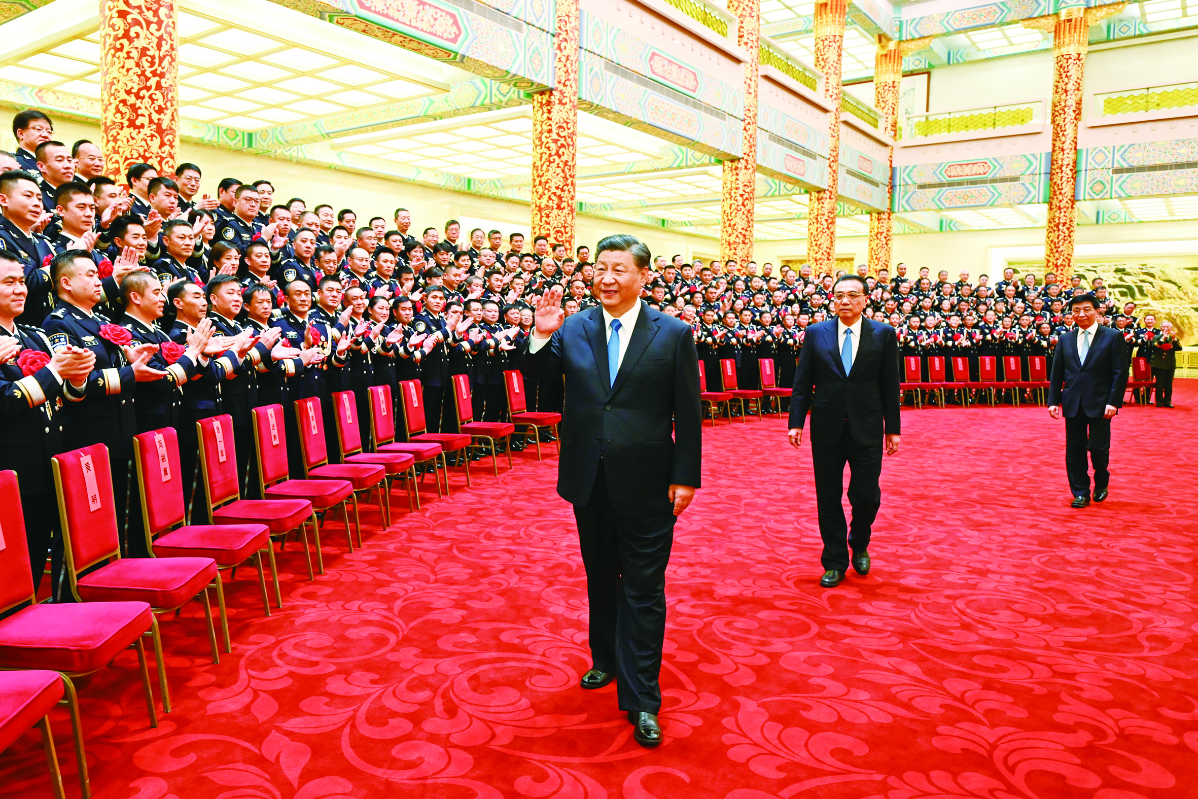 5月25日,党和国家领导人习近平、李克强、王沪宁等在北京人民大会堂会见全国公安系统英雄模范立功集体表彰大会代表。 新华社记者/李学仁 摄