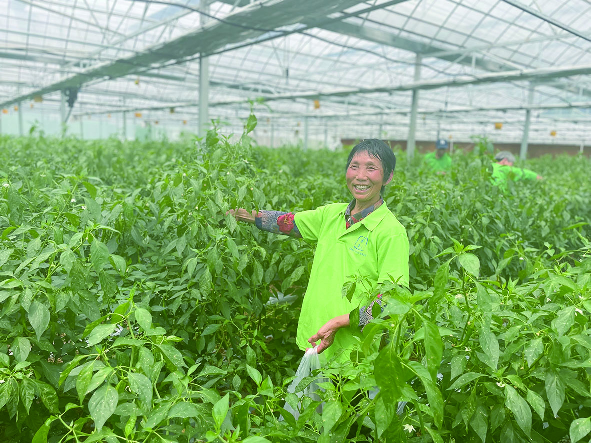 萧军解释:“这些辣椒树已长了两季,高的长到1.7米,矮的也有1.4米。它们会持续生长,待长到2米高左右,我们会给它们‘去顶’,让它们往粗里长。不同于一般辣椒树每年都会拔掉重种,只要维护得好,弗兰人肉辣椒树可以年复一年长在大棚里。”