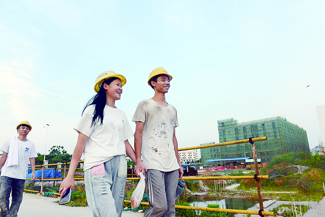夫妻合力,其利断金。两人相识于网络,别看才二十出头,现在已经有了两个孩子。在建筑工地上,夫妻搭配干活十分常见,但像王全辉这样出生于“95后”年轻夫妇,却不常见。虽然工友们都和父母年龄相仿,但这些大哥、大姐们在工作和生活中对他们都会百般照顾。