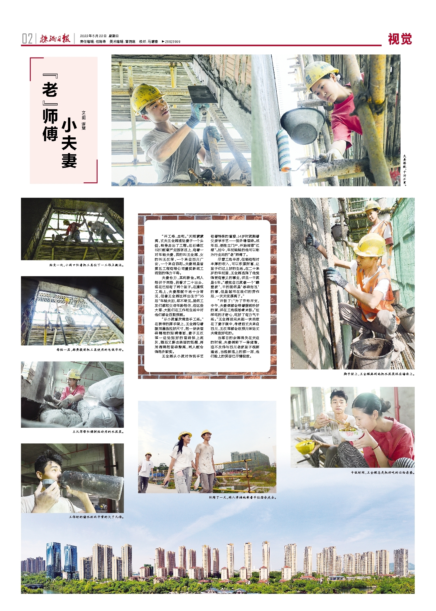 “开工咯,走吧。”天刚蒙蒙亮,丈夫王全辉递给妻子一个头盔,转身走出了工棚。在石峰区IGBT配套产业园项目上,有着一对年轻夫妻,男的叫王全辉,女的叫王汉萍,一个来自四川广安,一个来自邵阳。夫妻同是省第五工程有限公司童奕新泥工班组的得力干将。