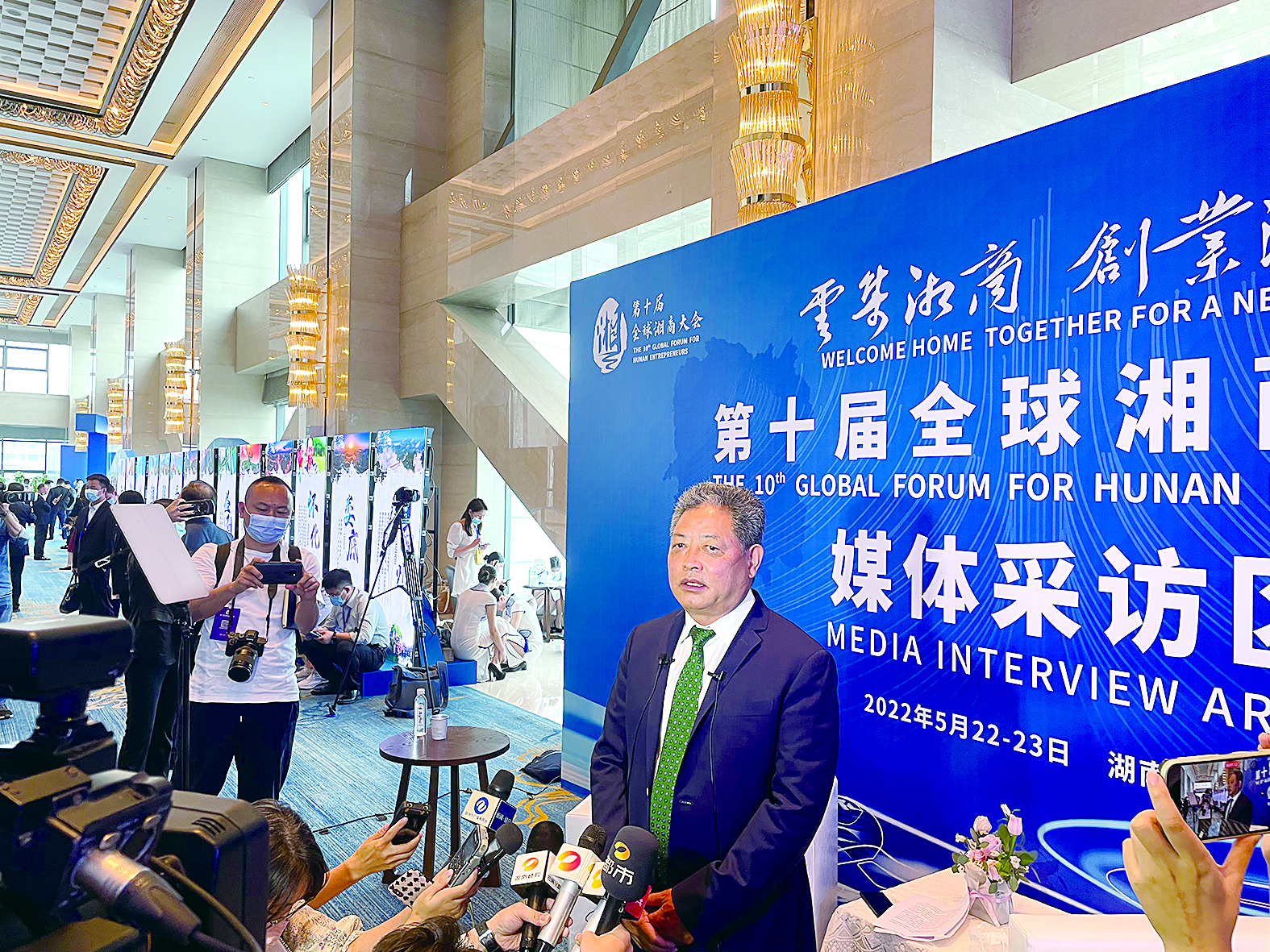 家乡湖南是我们的根与魂,这份赤子之心、游子之情永远割不断、丢不掉!回乡投资兴业,不仅可以实现自身企业的发展,又能为家乡的经济发展作出贡献。我呼吁更多的海外湘商将目光投向家乡这片热土,希望海外湘商发挥好桥梁、纽带作用,引荐更多的海外项目、海外产业回归湖南,助力湖南高质量发展。