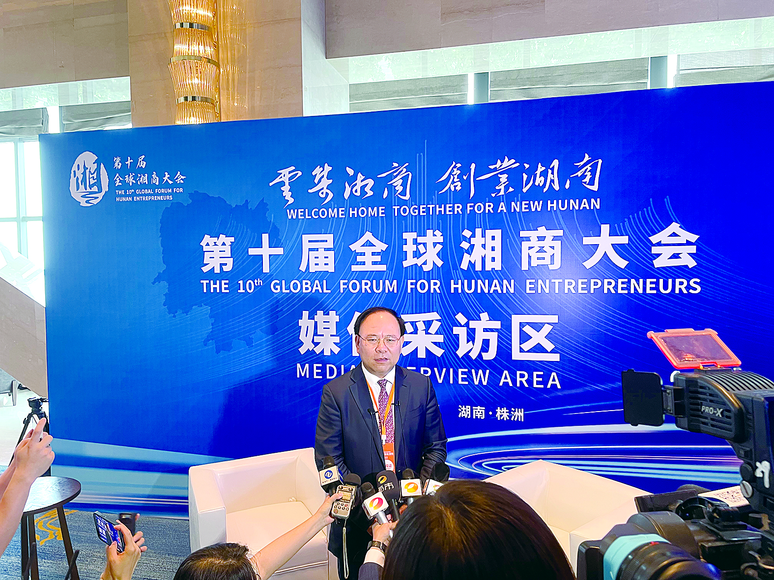 这次是我第二次来到株洲,上次在株举办湘商大会时,我也来了。这是一座生机勃勃的城市,产业基础雄厚,希望通过湘商大会的契机,进一步深入考察洽谈,寻求更多合作机会。