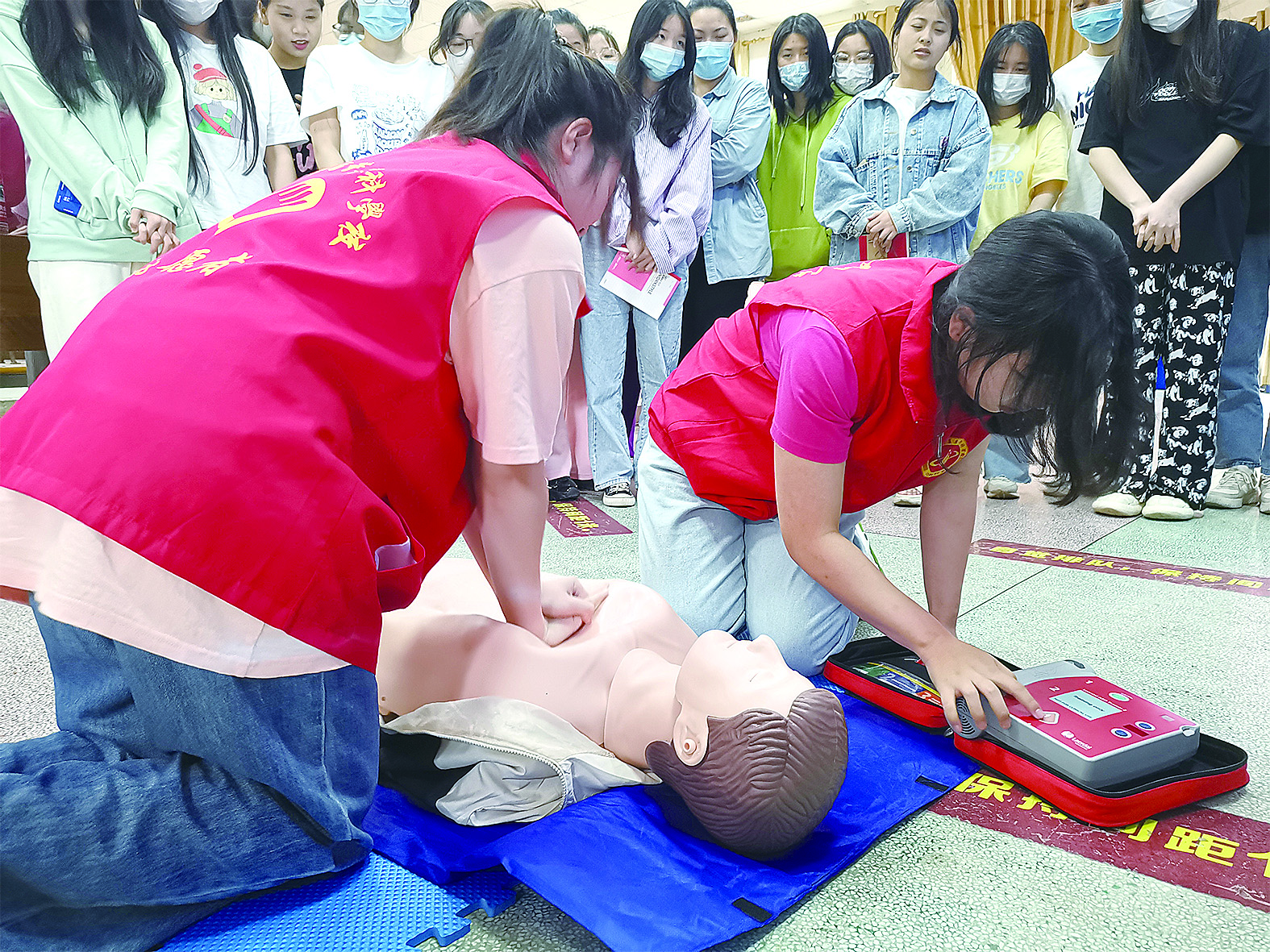 为提高公众现场救护意识,普及现场救护知识与技能,加快构建公众自救互救体系,5月21日下午,湖南中医药高等专科学校护理学院联合湖南省直中医医院的第一目击者培训导师团队,为该校学生普及紧急救援知识。培训现场,导师们对CPR(心肺复苏)急救技术、气道异物梗阻的急救技术、AED的使用以及创伤救护等知识进行细致讲解,并现场模拟演示,手把手教学。