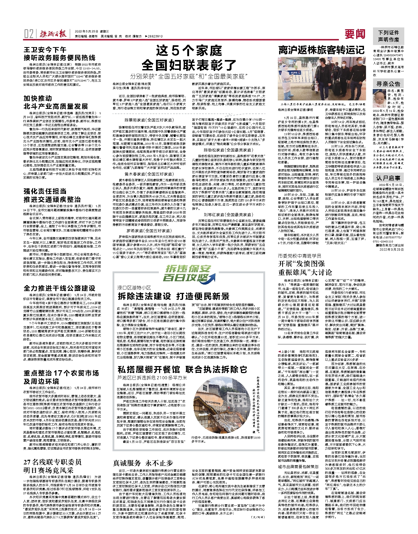 近日,全国妇联表彰了一批家庭典型,我市陈景明、黄木春、罗希3户家庭入选“全国五好家庭”,陈劲松、刘琴红2户家庭入选“全国最美家庭”。他们以小家育大爱,用行动诠释文明和谐家庭的深刻内涵,用优良的家教家风展示着当代家庭风采。