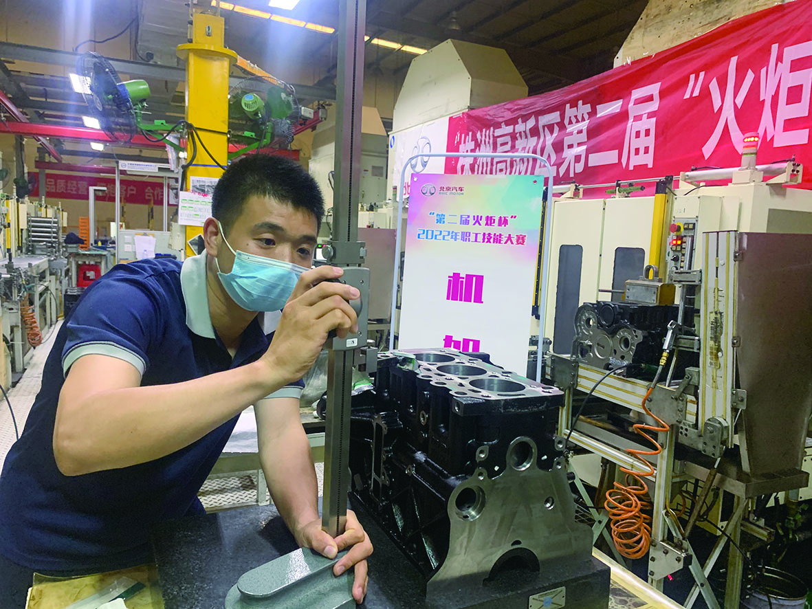 本届赛事设汽车维修工、钣金工、机加工等22个竞赛工种,吸引了10家企业2100人参赛,目的在于通过专业比拼、竞赛强技,培养更多优秀的技能型人才。图为获得冠军的周强正在一丝不苟投入比赛。