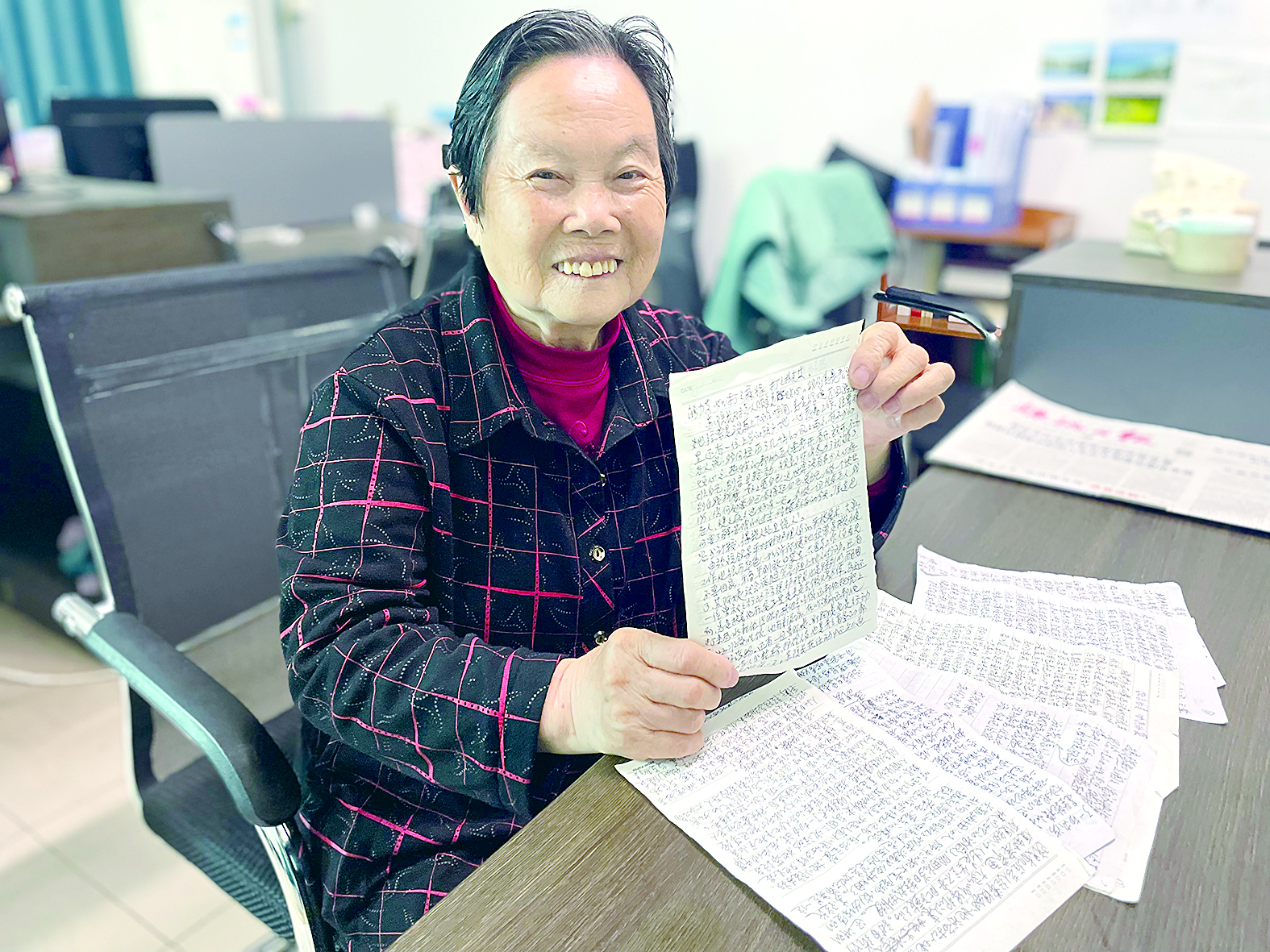 82岁的张翠兰老人和她手写的暖心故事。 株洲日报全媒体记者/杨如 摄