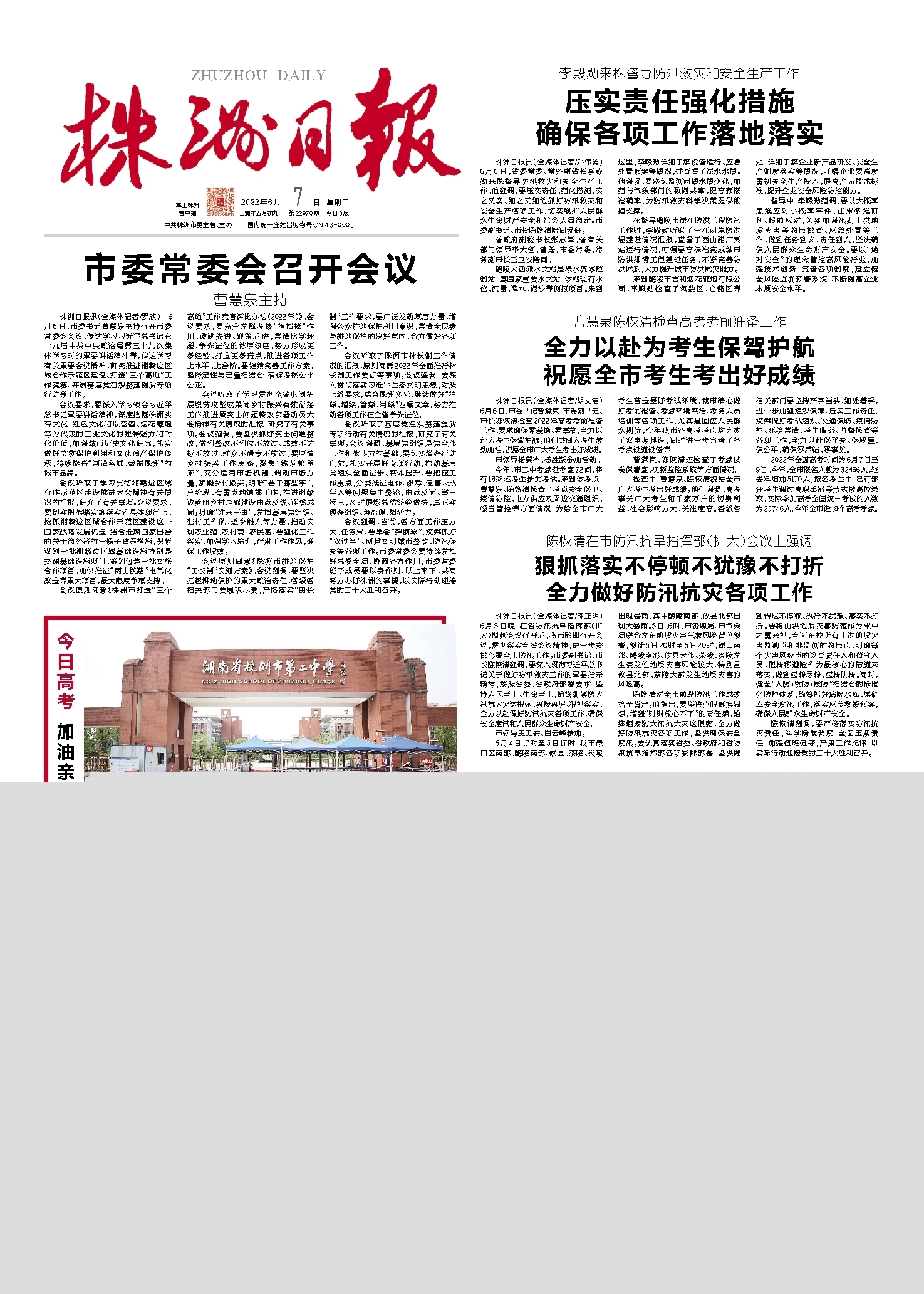 株洲日报讯(全媒体记者/邓伟勇) 6月6日,省委常委、常务副省长李殿勋来株督导防汛救灾和安全生产工作。他强调,要压实责任、强化措施,实之又实、细之又细地抓好防汛救灾和安全生产各项工作,切实维护人民群众生命财产安全和社会大局稳定。市委副书记、市长陈恢清陪同调研。
