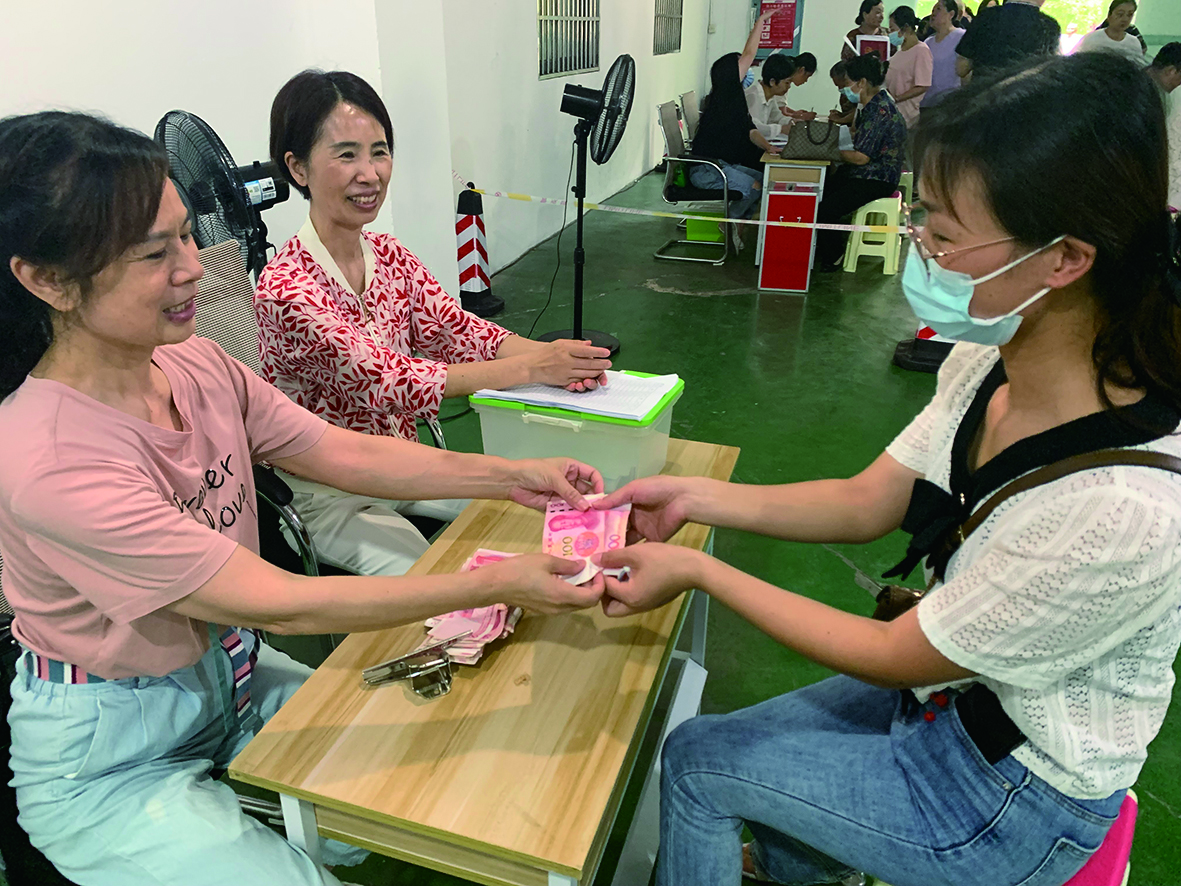颐景园小区业委会向业主派发公共收益。 吴楚/摄