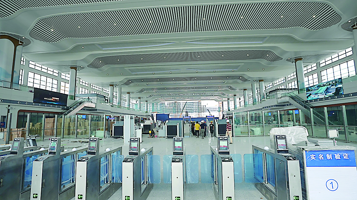 进入大门,可以看到进站区、售票区、候车区等均已完成分区隔离,进站实名验证以及进站安检的各个仪器设备,均已安装到位,正在进行相关调试。