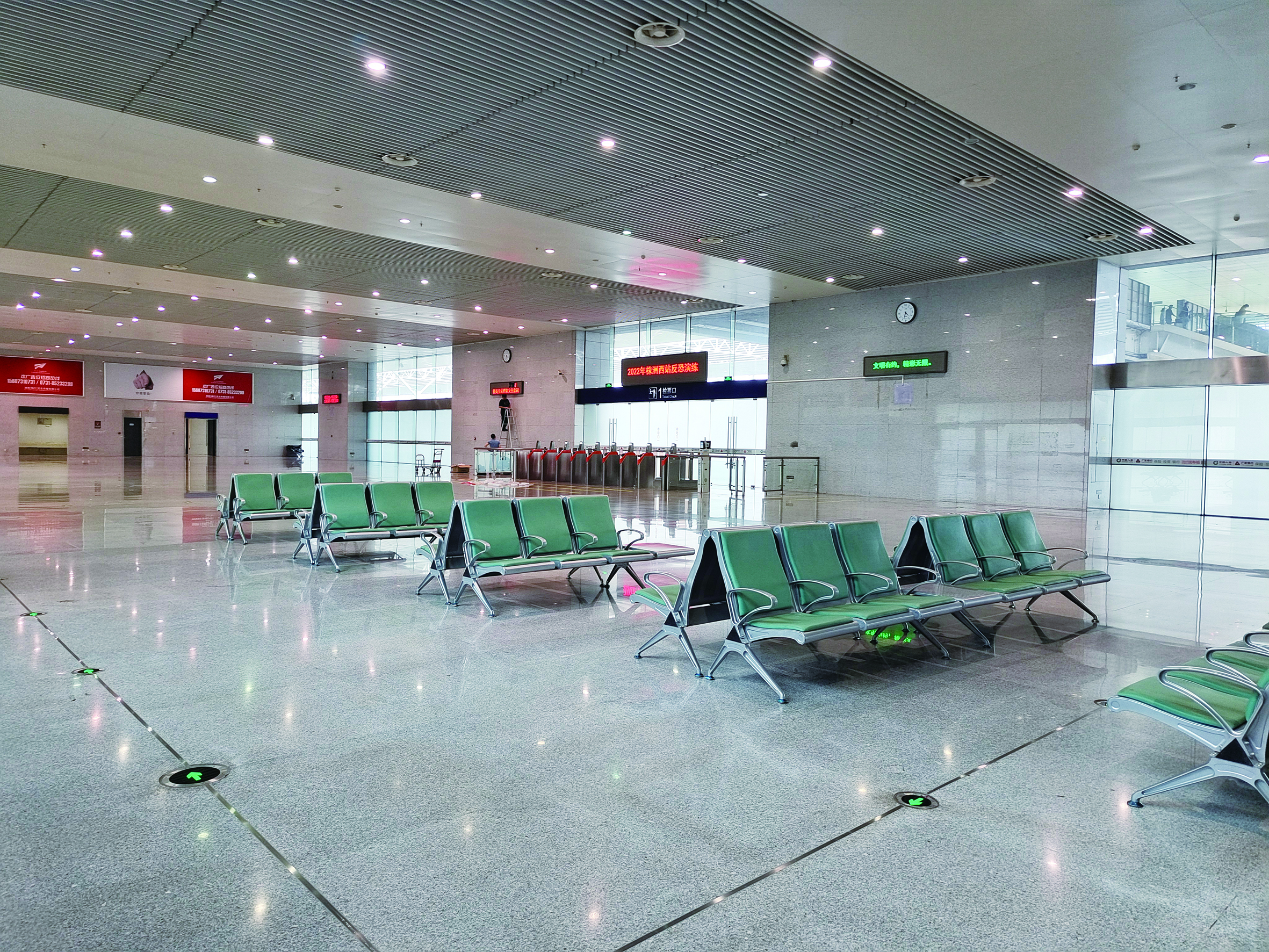 株洲西站一楼候车大厅,已摆放部分座椅,1号检票口的检票设备也已安装到位。 株洲日报全媒体记者/廖明 摄
