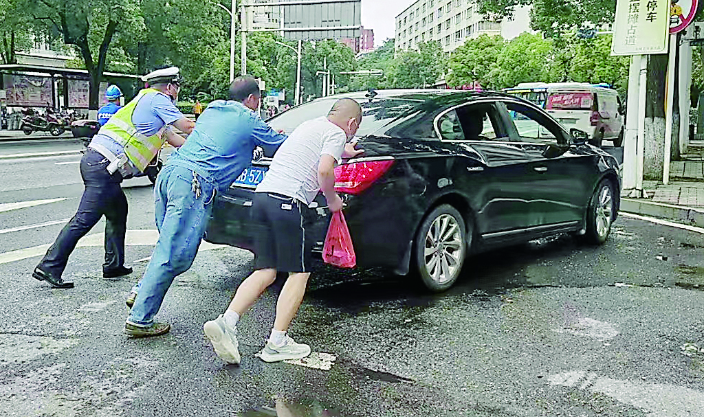 株洲日报讯(全媒体记者/肖蓉) 一辆小轿车马路中央抛锚,眼见交通越来越拥堵,及时赶到的交警一个人用尽全力也推不动小车,几位热心市民看到后立刻上前,与交警一起推车,路面很快恢复了通畅。昨日,网友“艺为欢86”拍下了这暖心一幕并配文发表在微博上。