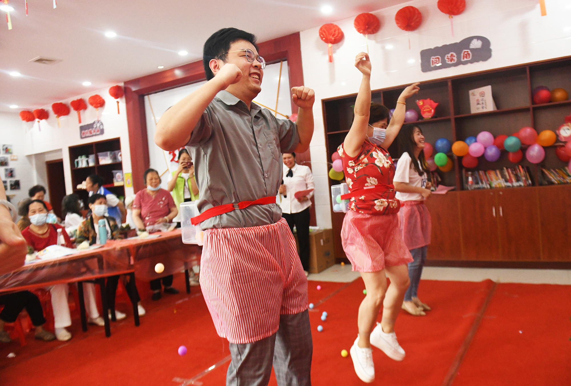 社区里,居民一起做游戏,增进了邻里之间的友谊。