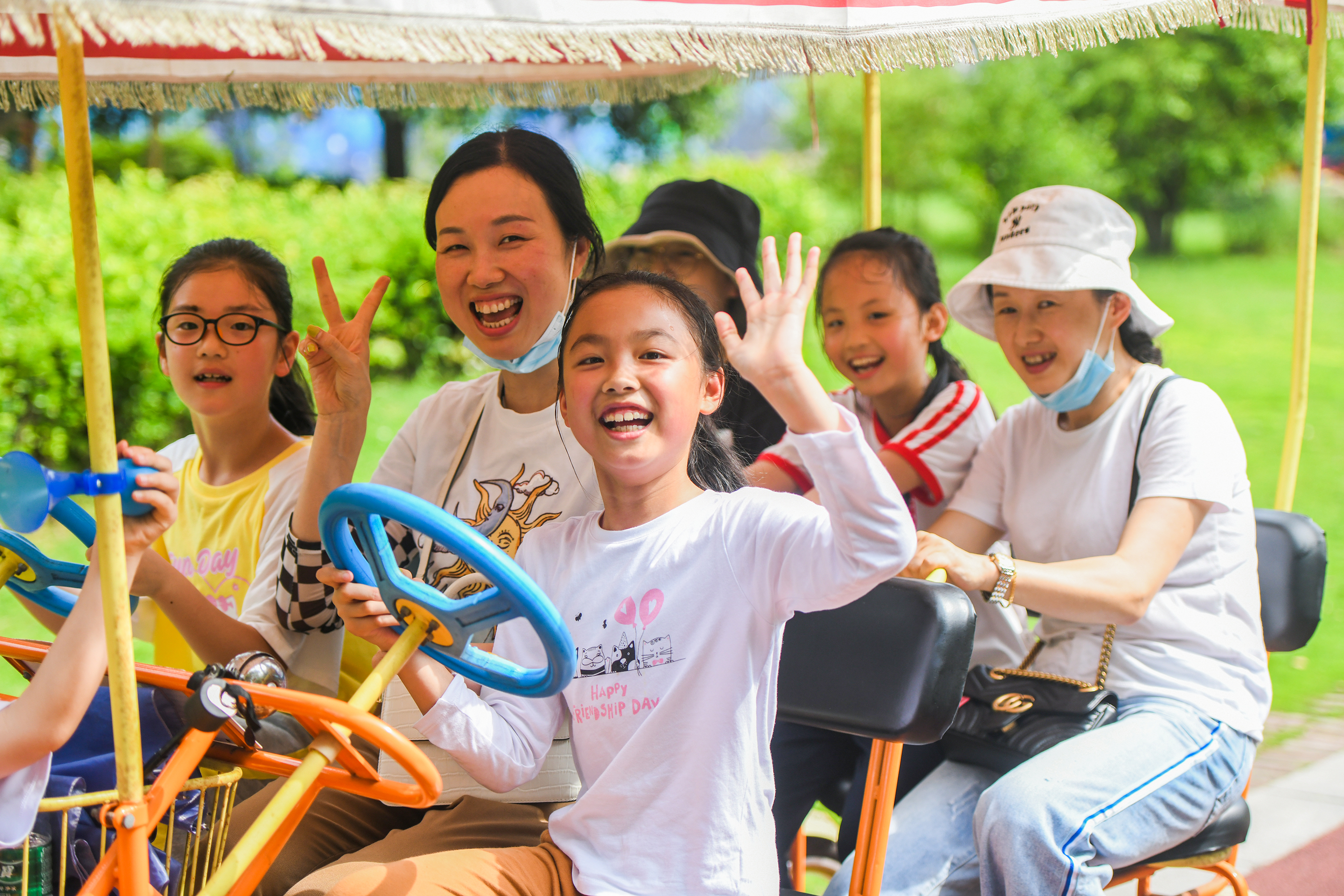 神农城,市民带着孩子快乐游玩。