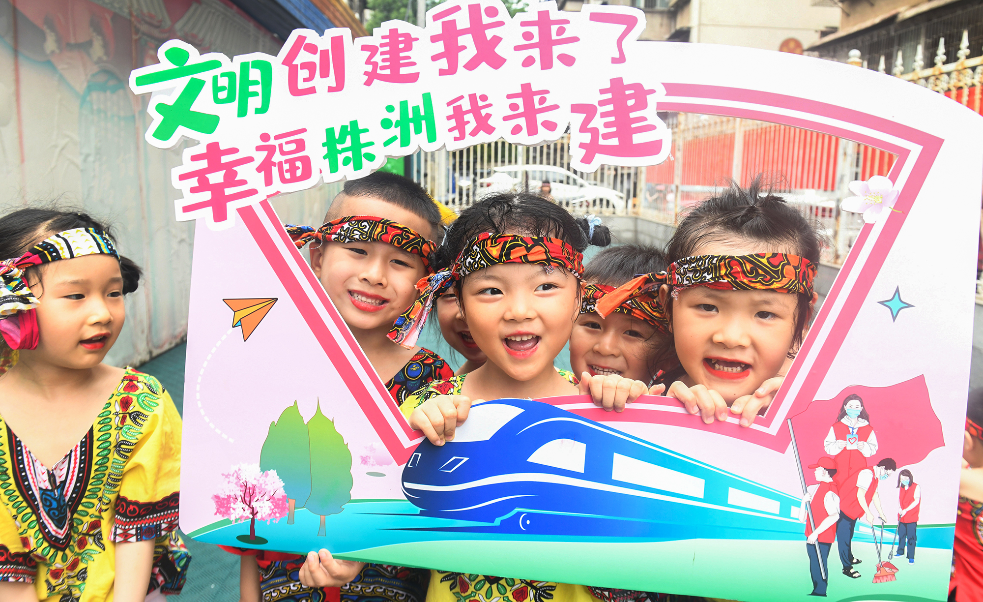 孩子们参加完文明创建活动,开心地合影留念。