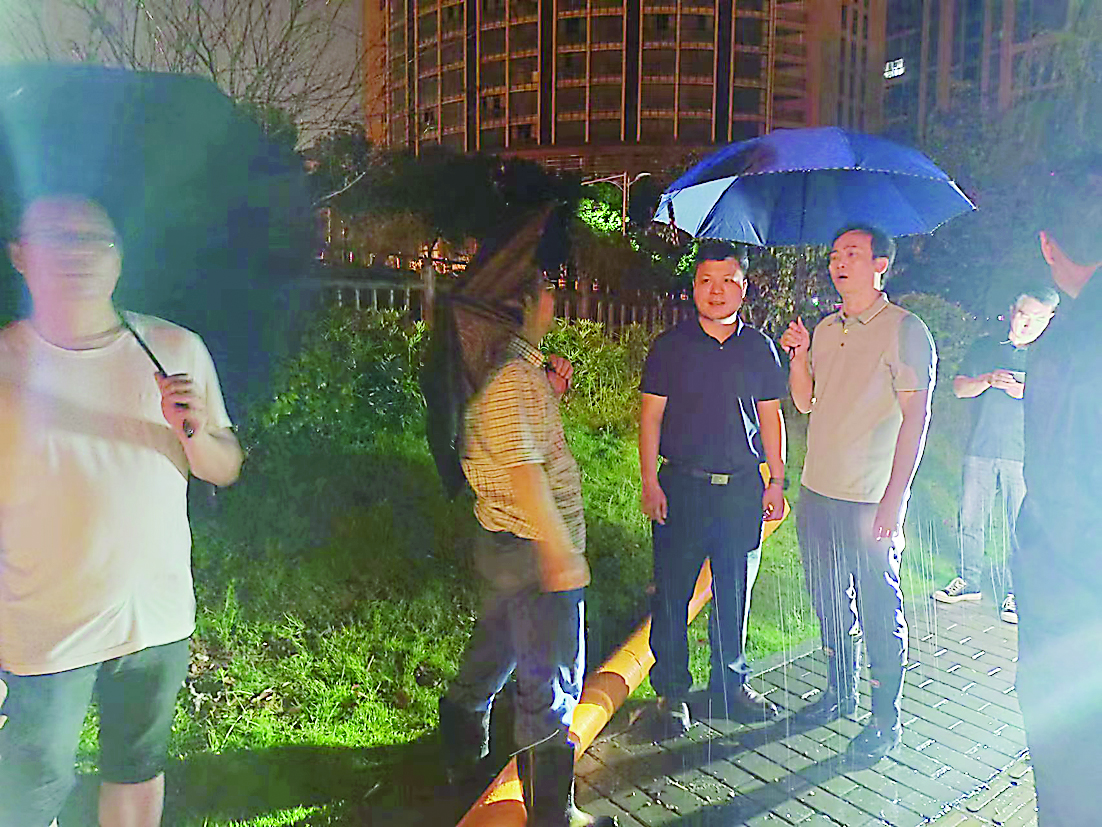 凌晨3时,参加完副市长、市河长办主任白云峰召开防汛应急调度会后,刘定光又匆忙带领应急、农业农村、城管等部门负责人现场检查城市内涝排水,调度白石港、建宁港的防汛工作。雨水交织着汗水,大家一脸紧张,不敢丝毫放松。