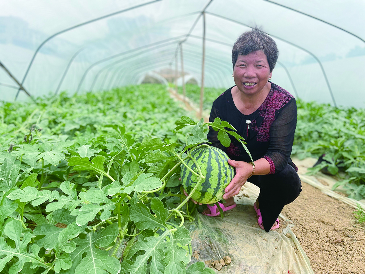 谢吉嫦说,村里发展西瓜产业,自己能在家门口做事,每天能赚100元,还有土地流转出去后的租金,拿着两份收入,心里美滋滋的。