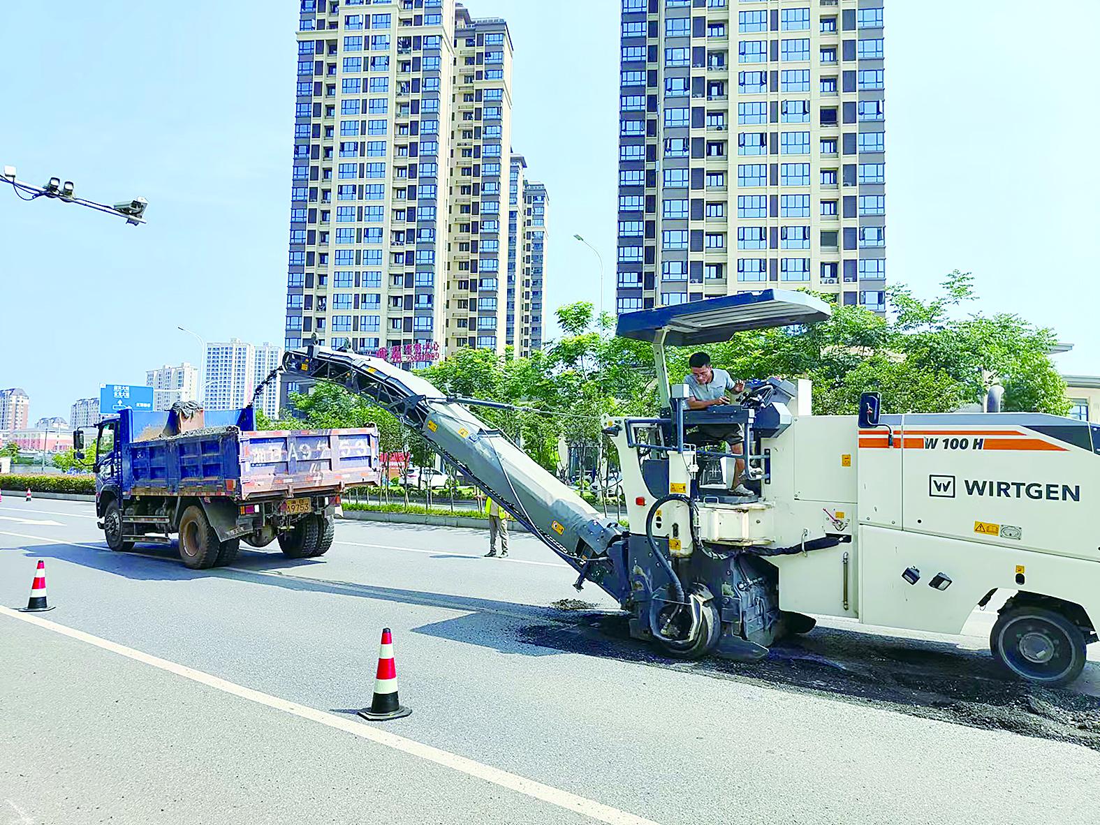 玉龙路二期路面修复现场。通讯员/甘敏 供图