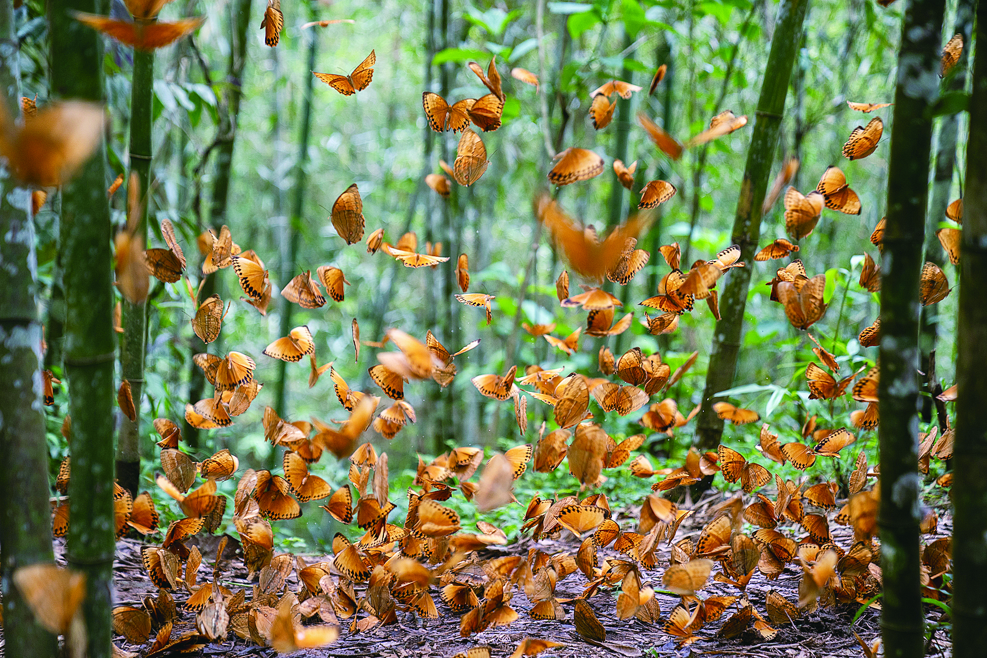 日前,云南金平中国·红河蝴蝶谷的蝴蝶已进入爆发期,预计今年蝴蝶爆发的总数可达1亿只以上。所谓“蝴蝶大爆发”,是指每年5月至6月,蝴蝶幼虫在短时间内大量集中羽化成蝶,在山林间、小溪边、山林小路上大量扎堆及漫天飞舞形成的景观。