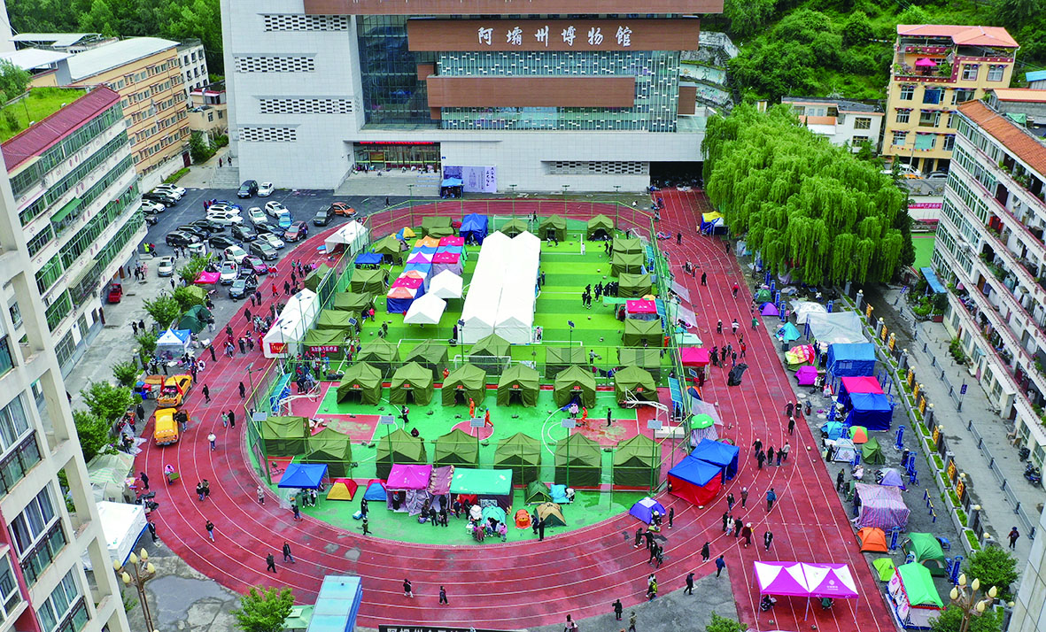 6月10日拍摄的马尔康市州医院背后广场安置点(无人机照片)。 新华社发