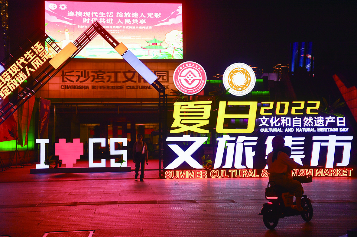 6月10日,人们准备进入长沙滨江文化园的非遗集市。 6月3日至12日,2022年长沙市文化和自然遗产日宣传展示系列活动在长沙滨江文化园举行,吸引众多市民和游客前来体验非遗项目、非遗文创产品、非遗音乐会等,并通过发放文旅消费券,以夜间集市聚人气,刺激文旅消费市场。 新华社发