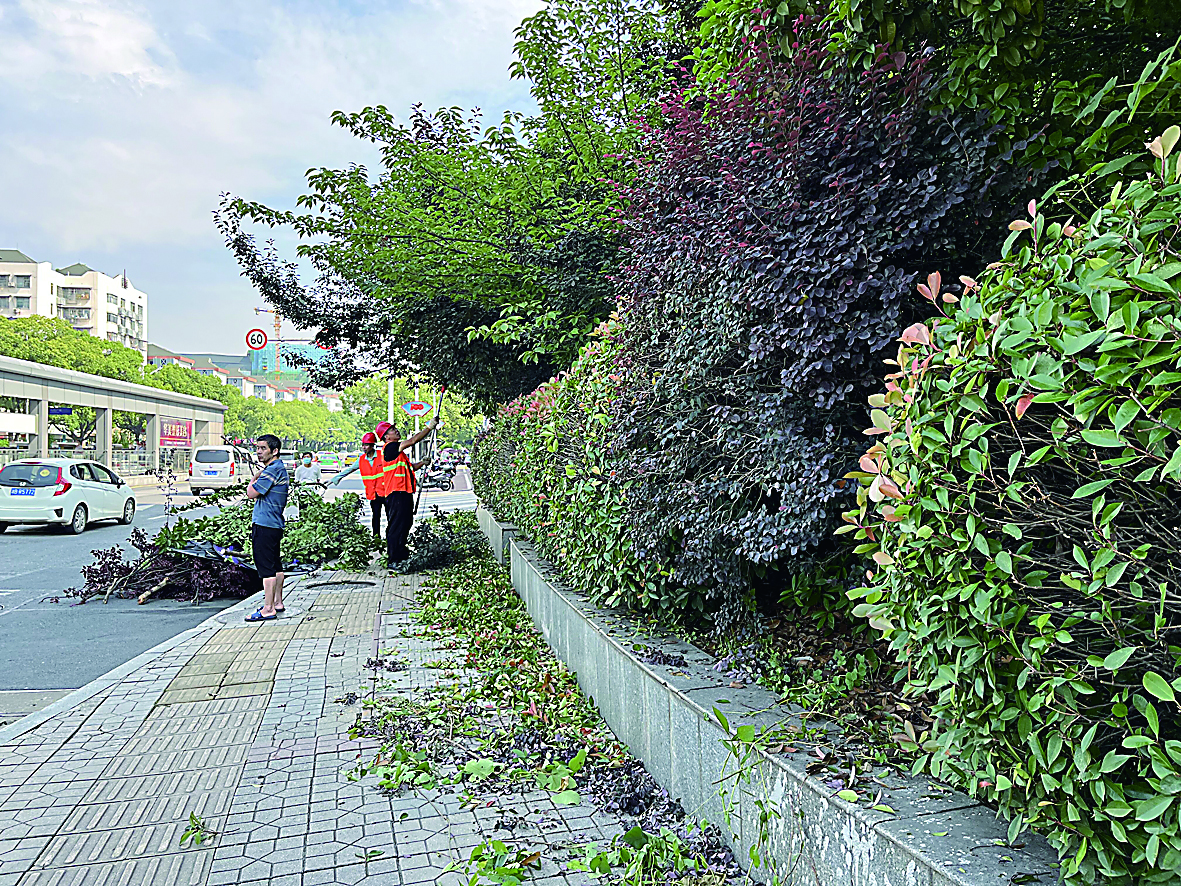 连日来,城区街头巷尾可见园林工人忙碌的身影,路边不少绿化带被修剪得整整齐齐,人行道也变得更加通畅。