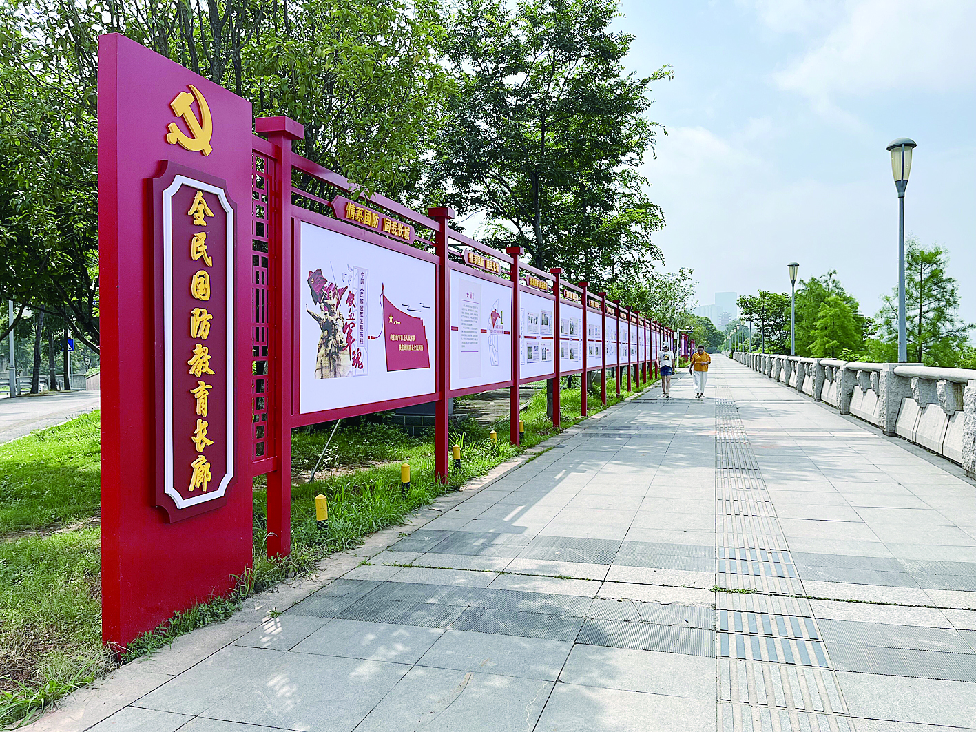 6月14日,芦淞大桥附近的河东湘江风光带,一条新建的全民国防教育长廊吸引了不少休闲市民的目光。