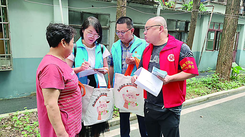 株洲日报社党员志愿者收集居民对创文工作的意见和建议。 株洲日报全媒体记者/杨凌凌 摄