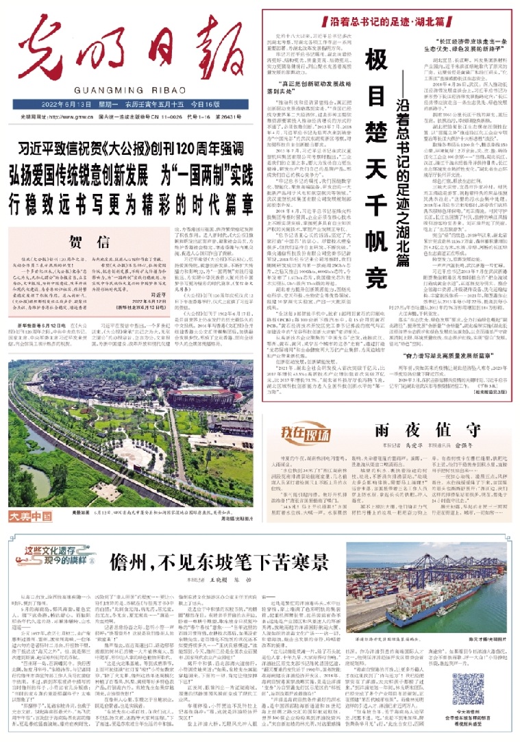 株洲日报讯(全媒体记者/俞强年 通讯员/陈立志 刘润波 蔡蓝天) 6月13日,《光明日报》头版“我在现场”栏目聚焦株洲,报道了我市防汛工作《夜雨值守》的故事。