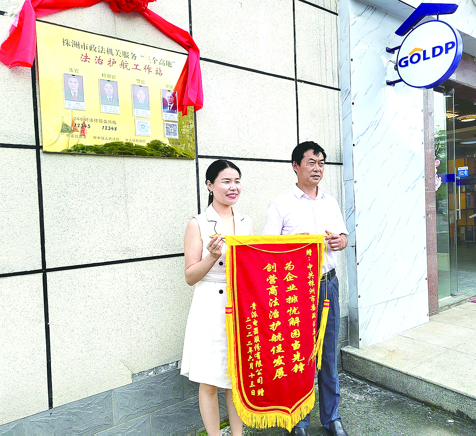 贵派电器为“法治护航工作站”赠送锦旗。 通讯员 供图