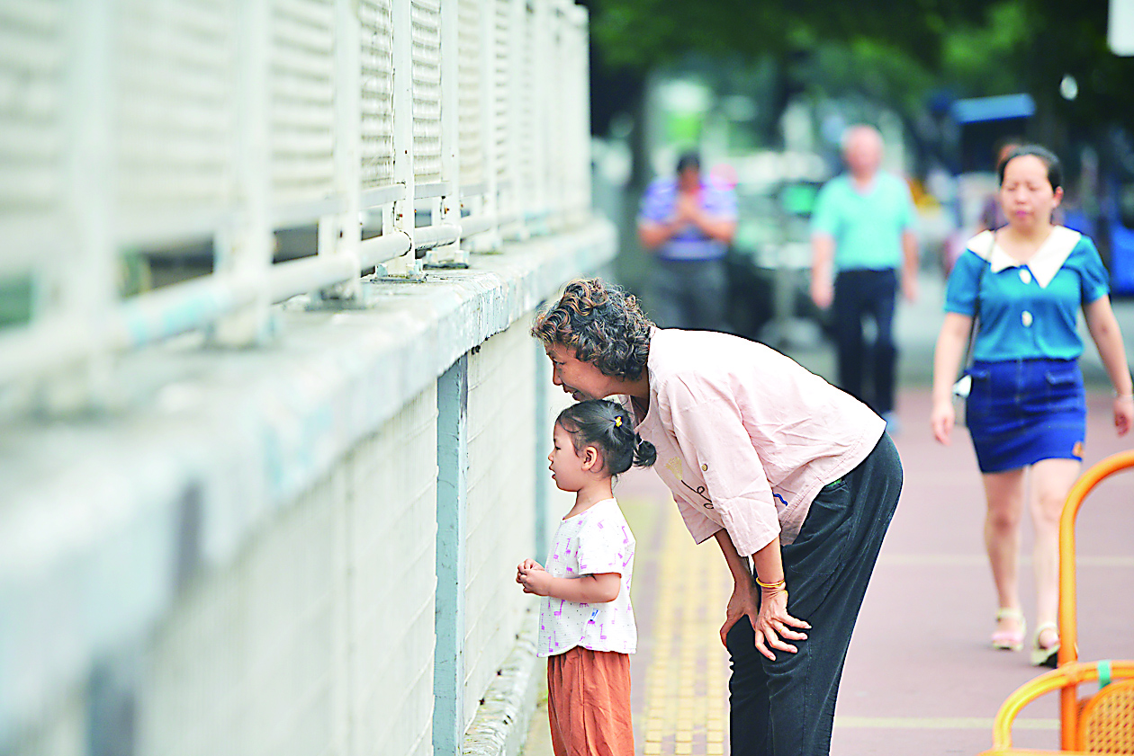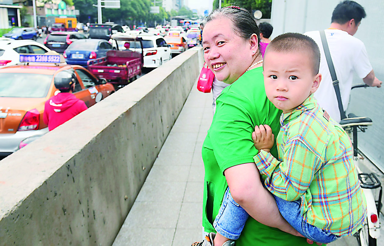 市民背着孙儿来体验新华桥的新貌。 株洲日报全媒体记者/谢慧 摄