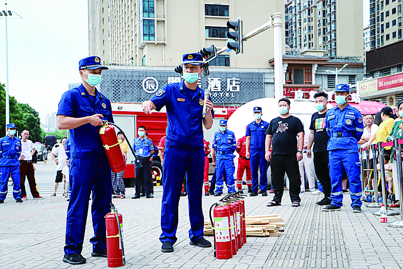 天元消防救援大队消防员向市民介绍火灾的预防与逃生。 株洲日报全媒体记者/王娜 摄