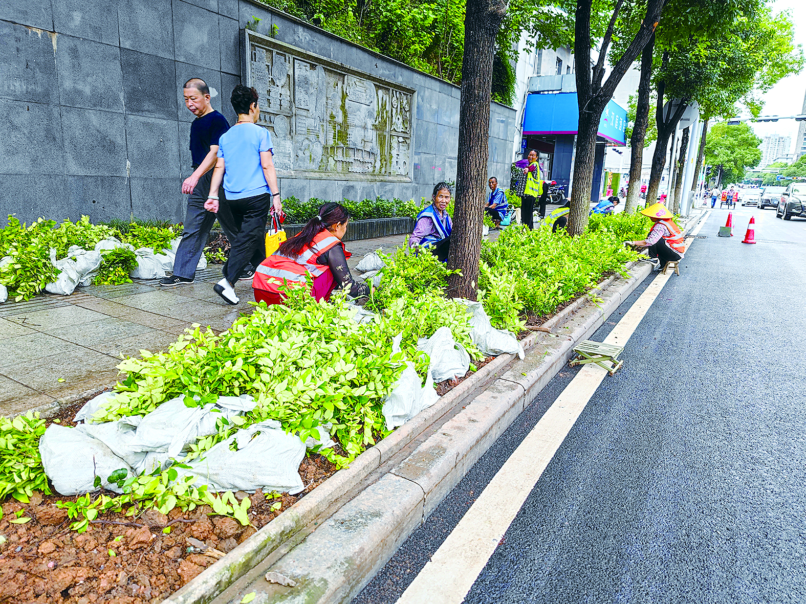 新华桥及周边区域是城区的中心地段,近两年由于封闭施工使周边绿化带及设施受损严重。为美化城市街区环境,全力营造共建文明城市的氛围,近日来,荷塘区园林绿化中心紧抓雨水较多、绿化植物容易生长的有利时机,现场勘察,确定施工方案,对封闭施工损毁的绿化带及时实施补植复绿。