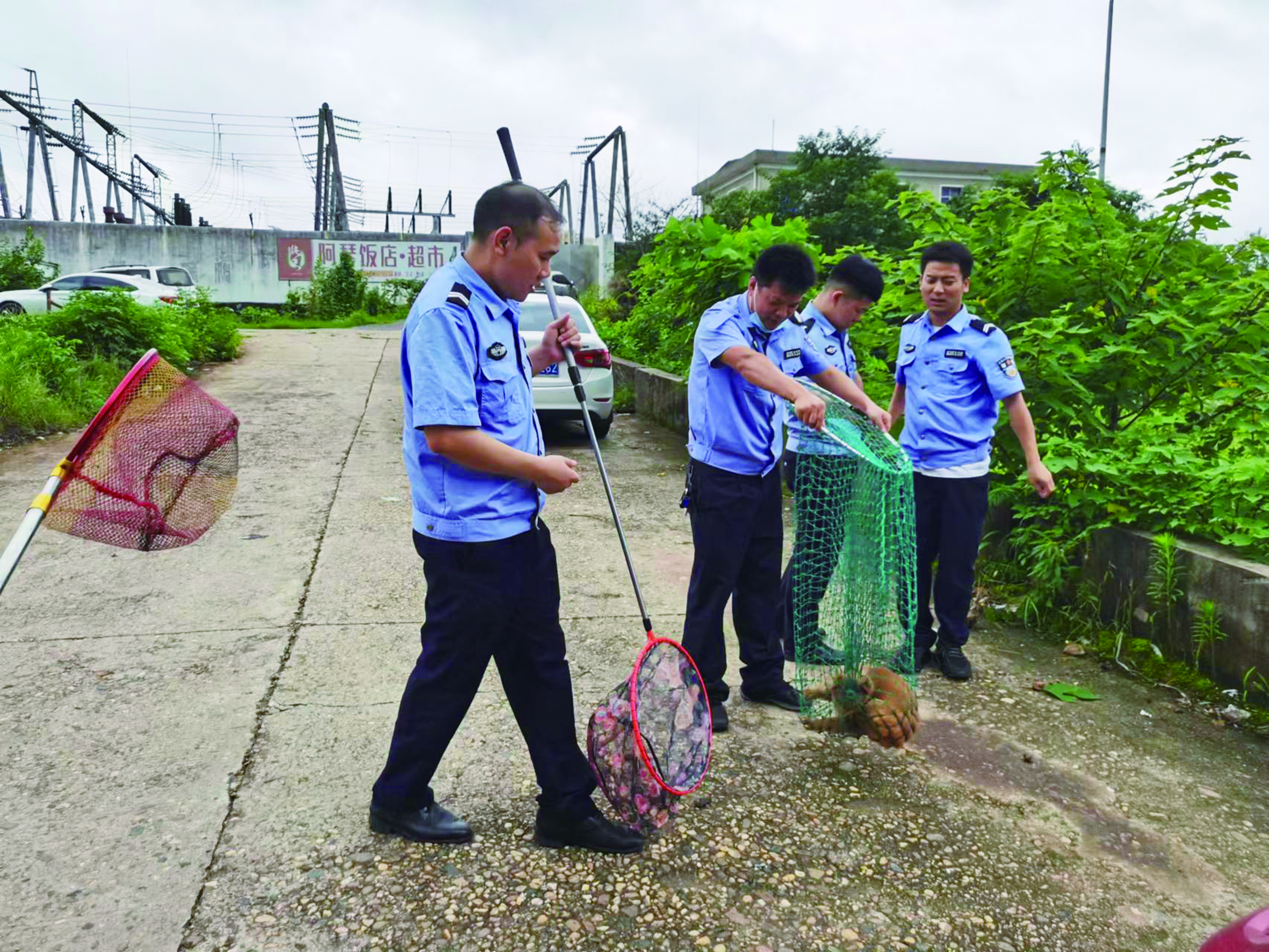 公安民警抓捕流浪狗。 通讯员/甘敏 供图