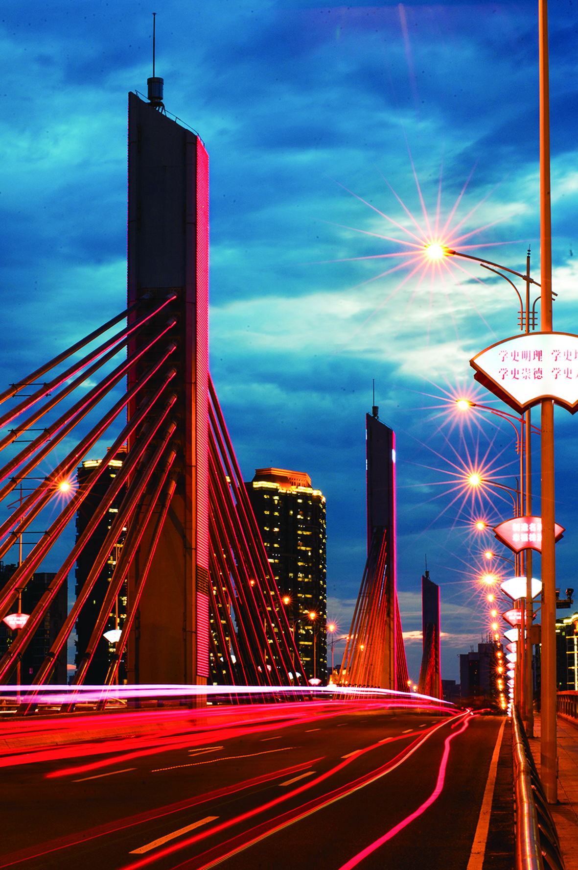 车流自桥的那头驶向这头,灯轨便也自桥的那头流向这头,仿佛将桥延展、接续,没有完结。一条条绚丽的光之线,鲜活生动地串起这座城的喜怒哀乐,繁华富丽却又悄然无息,仿佛动漫里那些过饱和色彩的写实场景,画面缓缓拉过、显现,又隐没在远处。整座城弥漫出一种既灵动活跃,又格外厚实的世俗生活欢喜劲头。