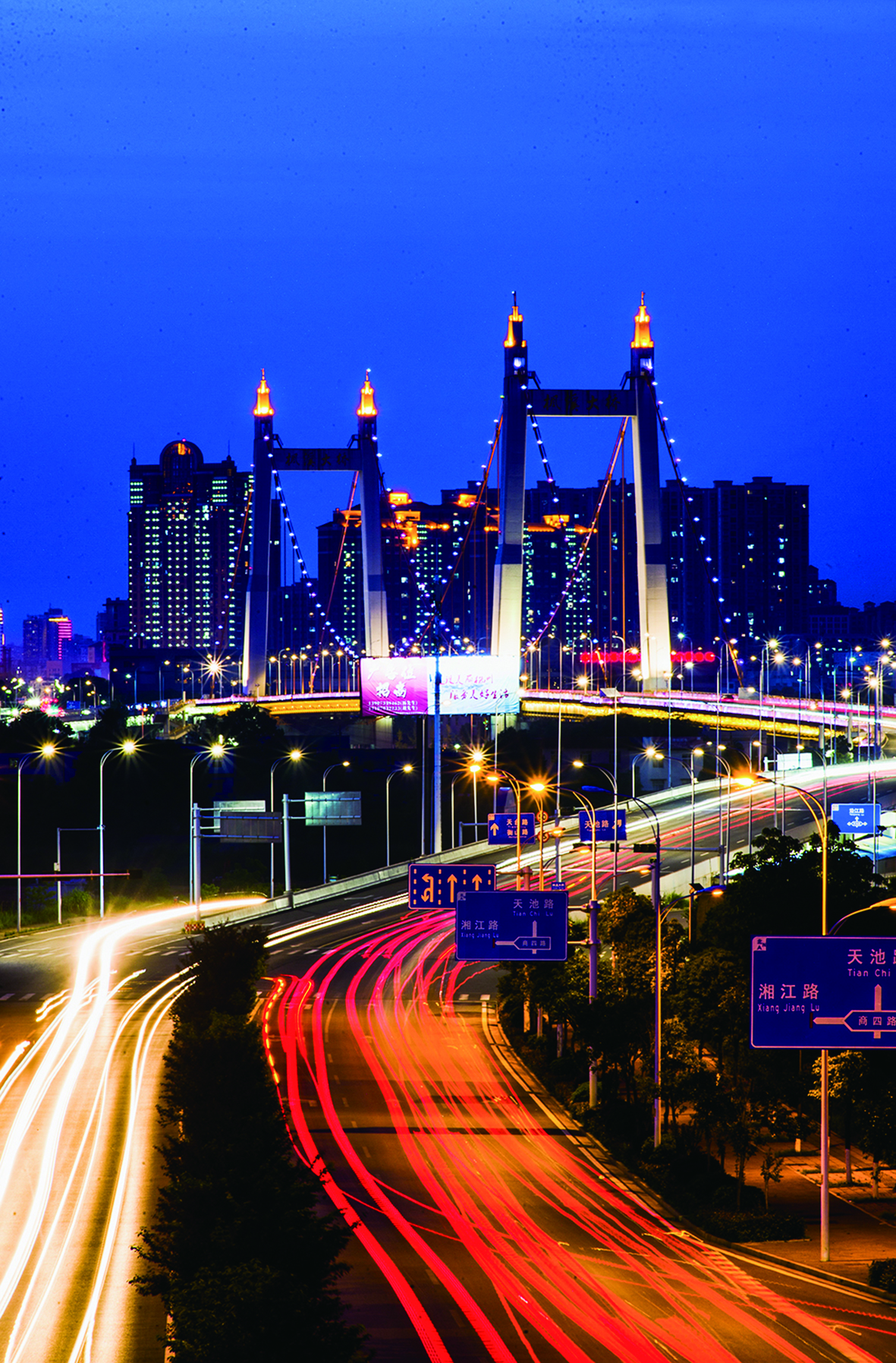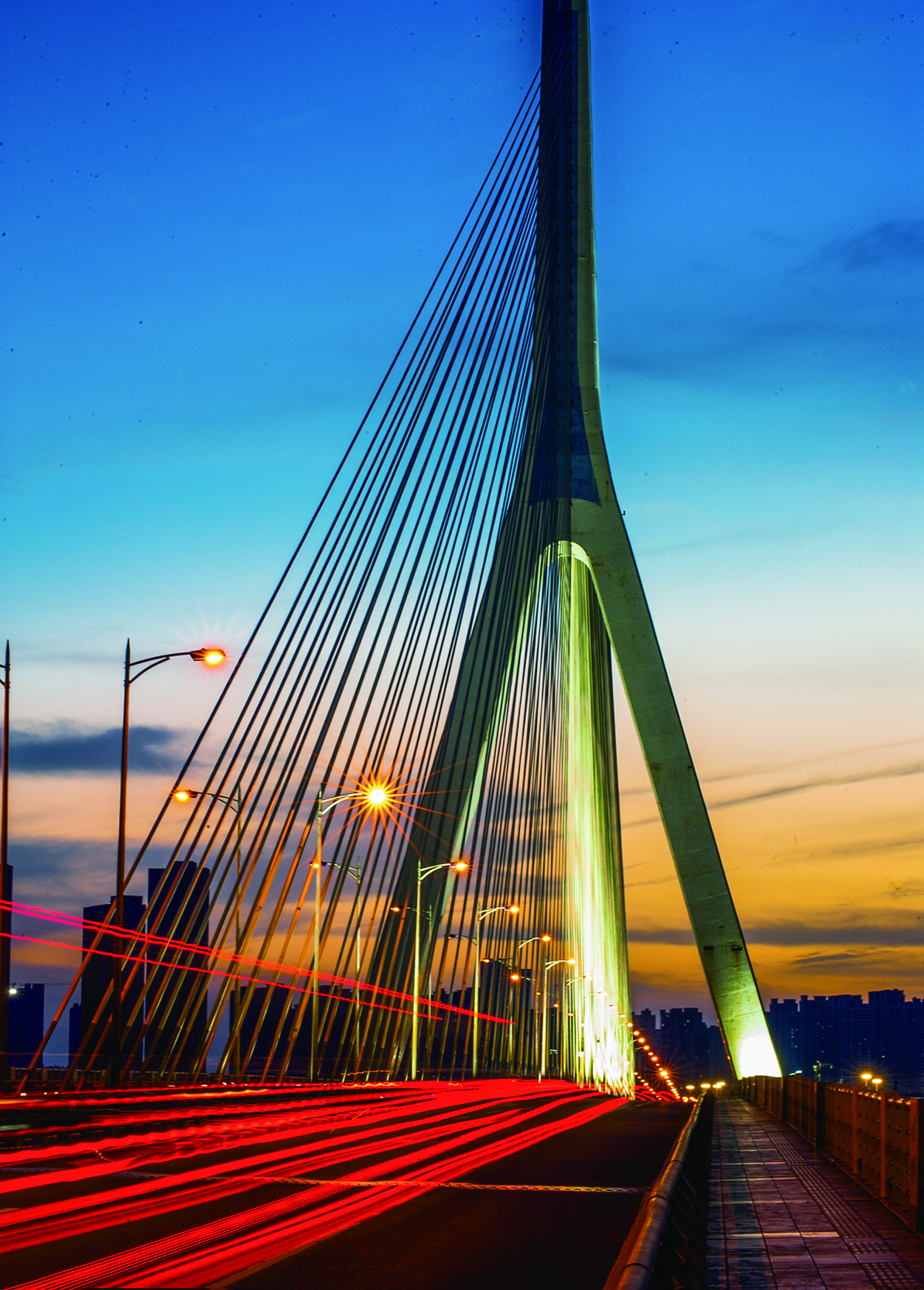 然而,到了黄昏,当桥那头的云渐渐厚重,桥上与四周的灯渐渐亮起,归家的车灯渐渐密集,流动成线,这些桥,也便有了新的模样。璀璨的灯火,让人心里暖和安定。