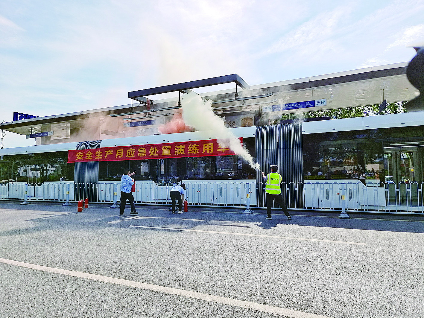 应急演练模拟了“暴徒”持刀在公交站台“行凶”,以及智轨列车进站充电时突发火情两个场景,经过株洲公交现场工作人员紧急处置,以及应急预案启动后各方协同,险情迅速得以控制,危害降至最低。