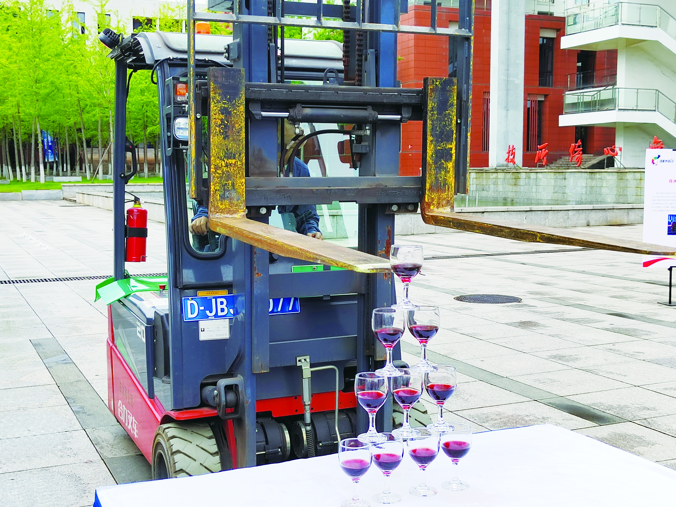 “叉车叠酒杯”表演。 株洲日报全媒体记者/易楚曈 摄