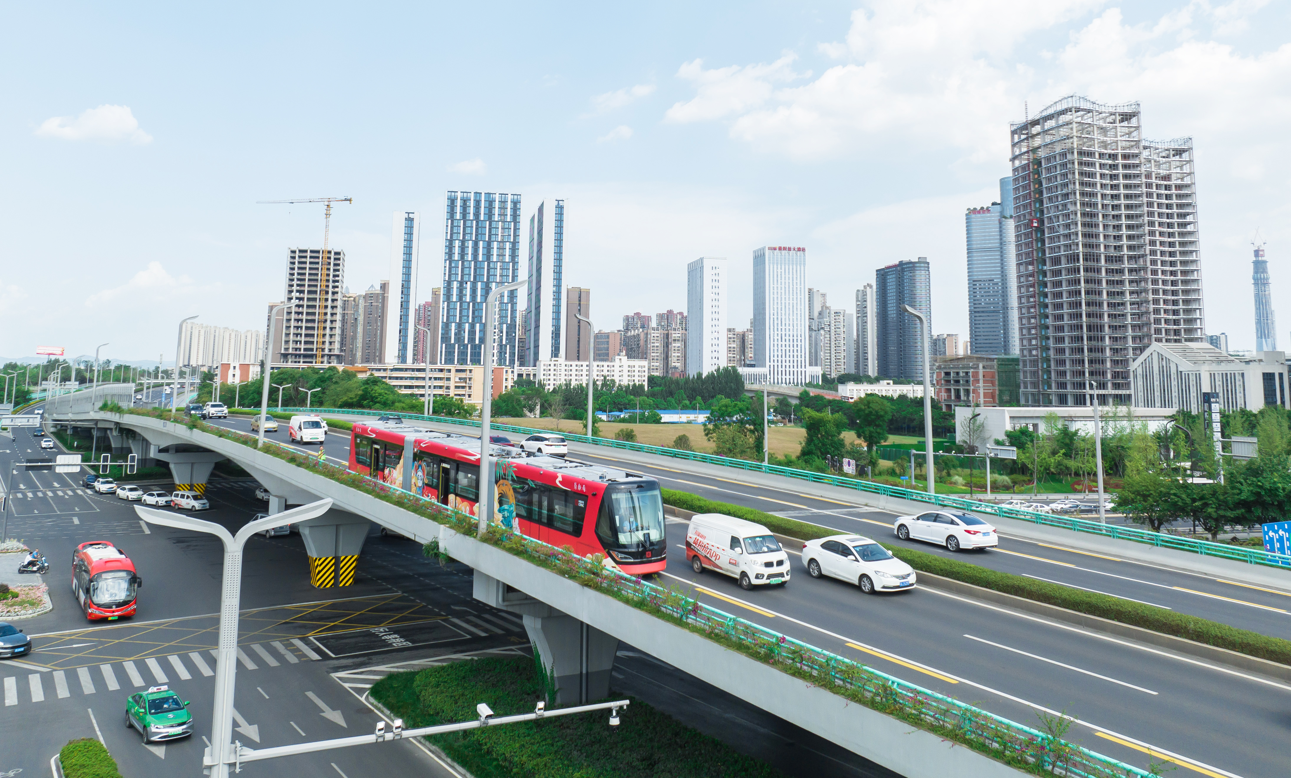 中车株洲所副总经理陈剑表示,智轨具有建设周期短、基础设施投资小、调度灵活等特点,集合了轨道交通、地面交通优势,具有运送能力强、低碳环保、快速平稳等特点,能有效缓解道路拥堵、降低环境污染。