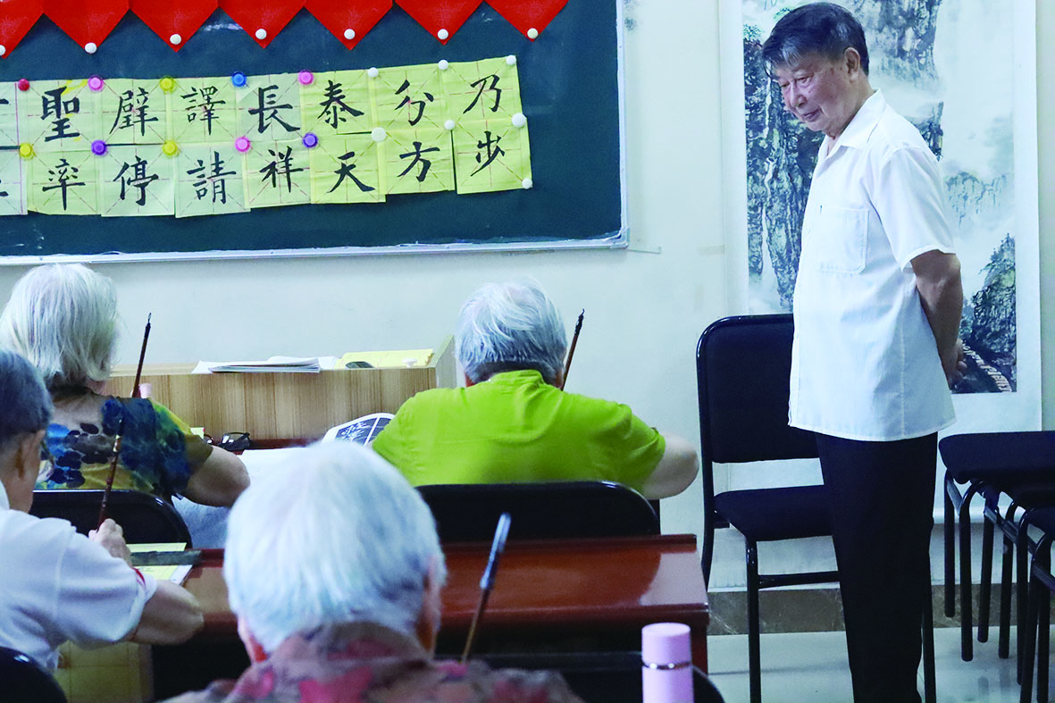 去年10月,李叙友和老伴入驻盛康·国际颐养苑后,不少老人纷纷向他请教书法,他索性办了一个公益兴趣班,免费教这里的老人学书法。