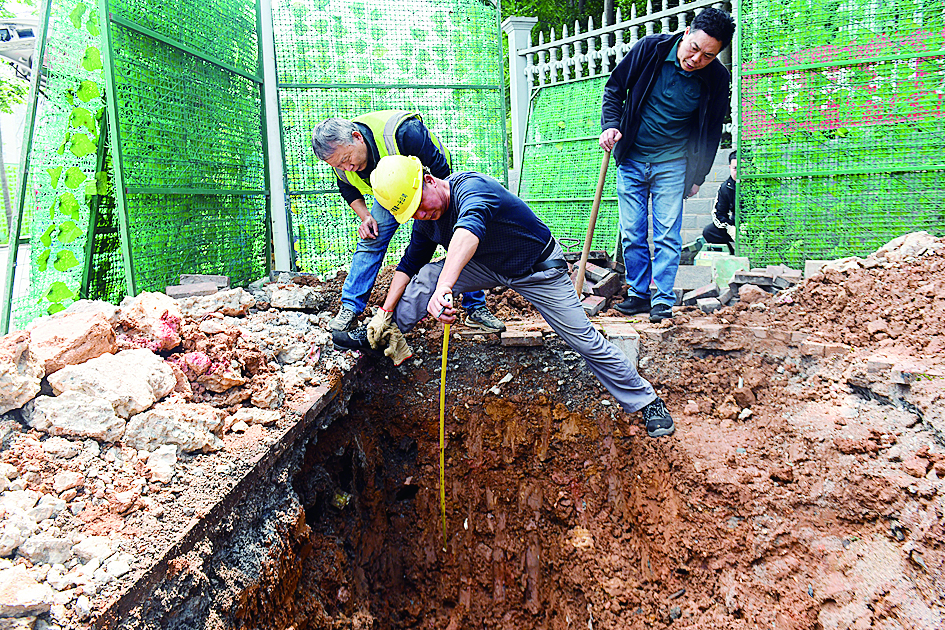 配合施工人员对暗漏点开挖。