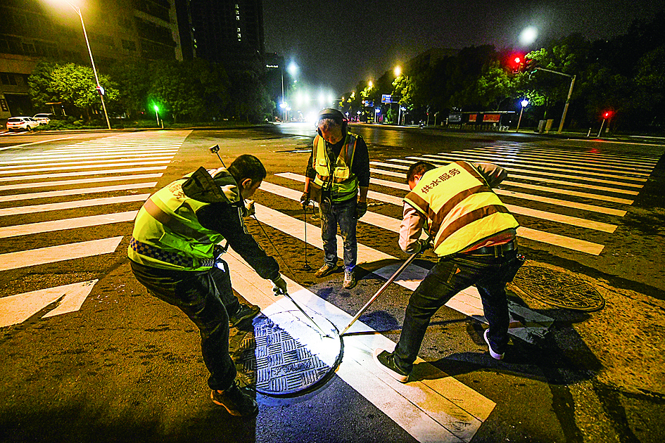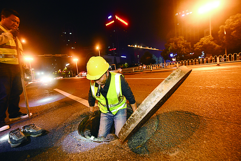凌晨,长江路,撬开井盖检查。