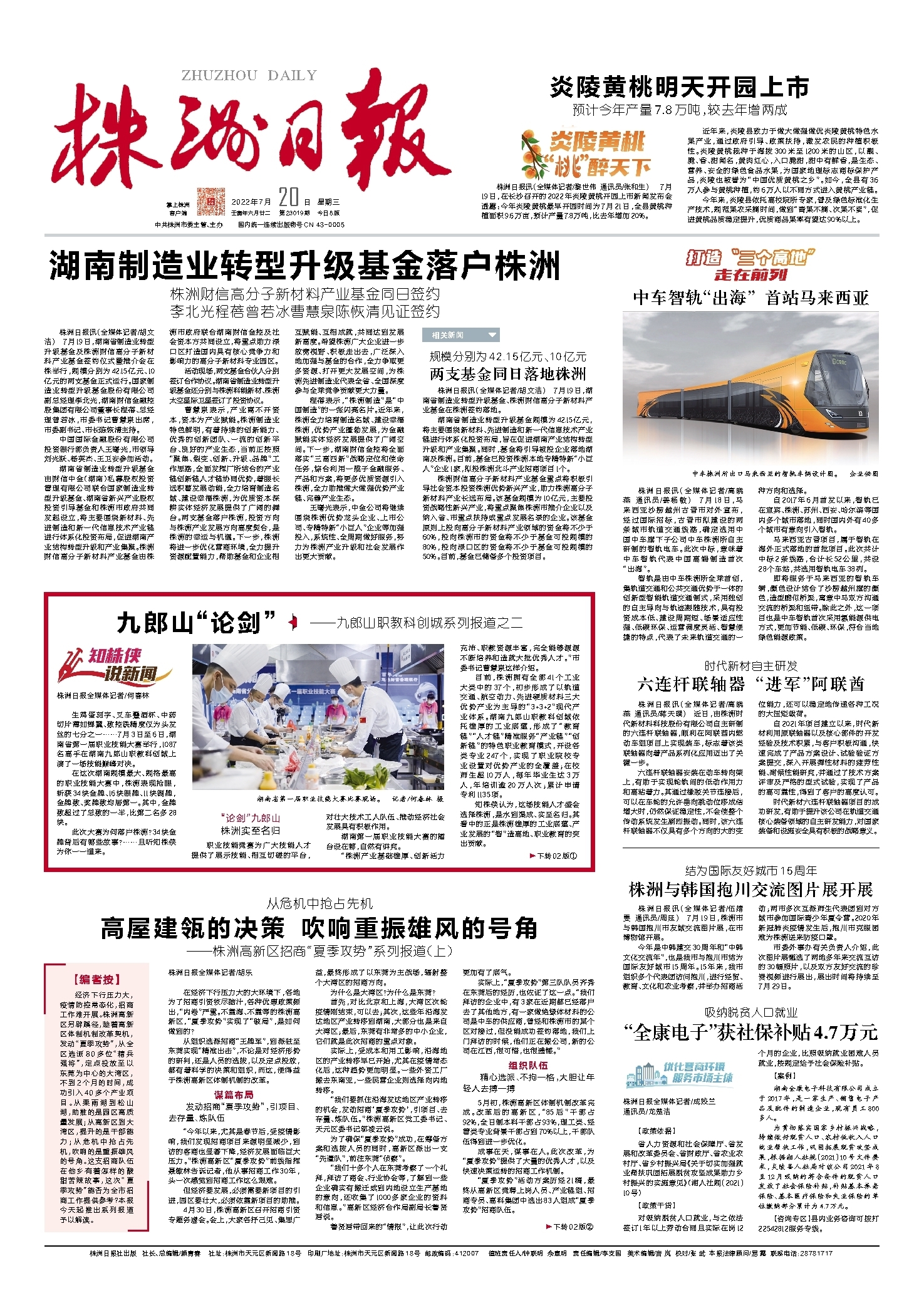 株洲日报讯(全媒体记者/黎世伟 通讯员/张和生) 7月19日,在长沙召开的2022年炎陵黄桃开园上市新闻发布会透露:今年炎陵黄桃最早开园时间为7月21日,全县黄桃种植面积9.6万亩,预计产量7.8万吨,比去年增加20%。