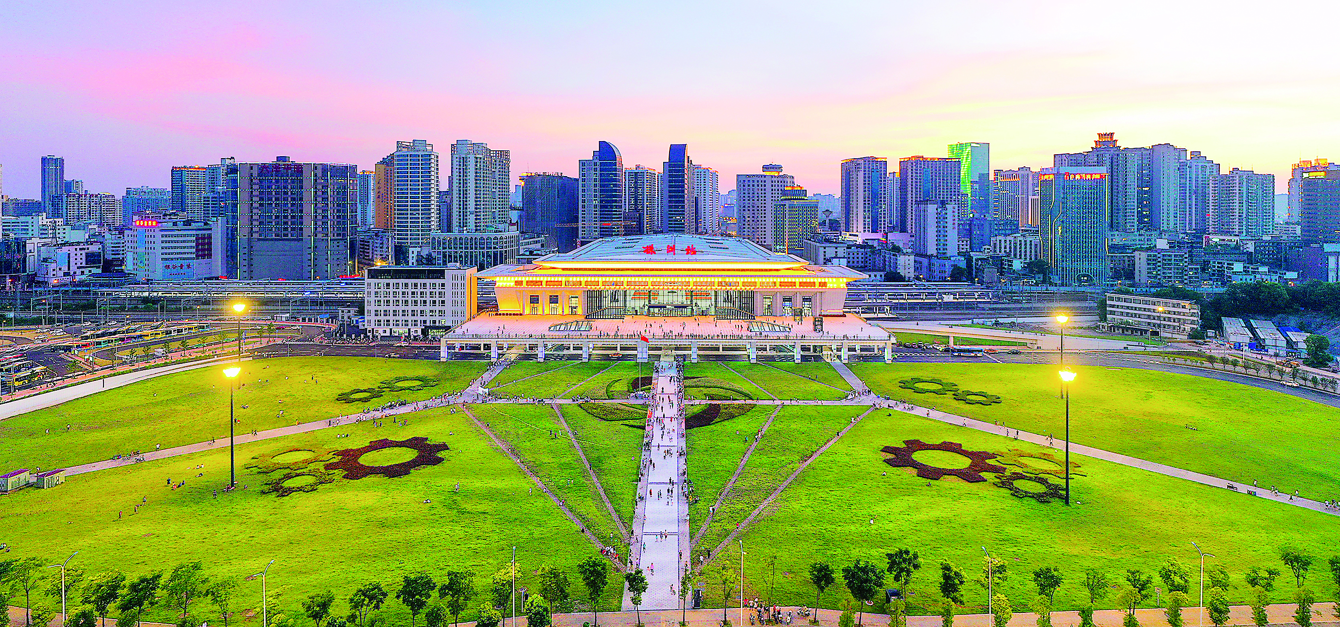 傍晚时分,株洲站东站房的夜景分外妖娆。