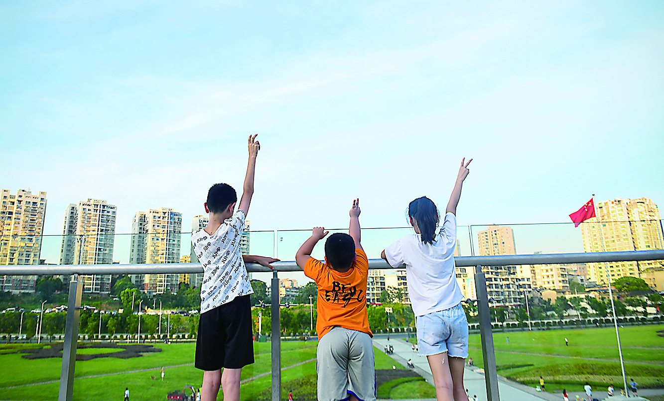 第一次来东站房的小朋友们,兴奋地举手拍照。