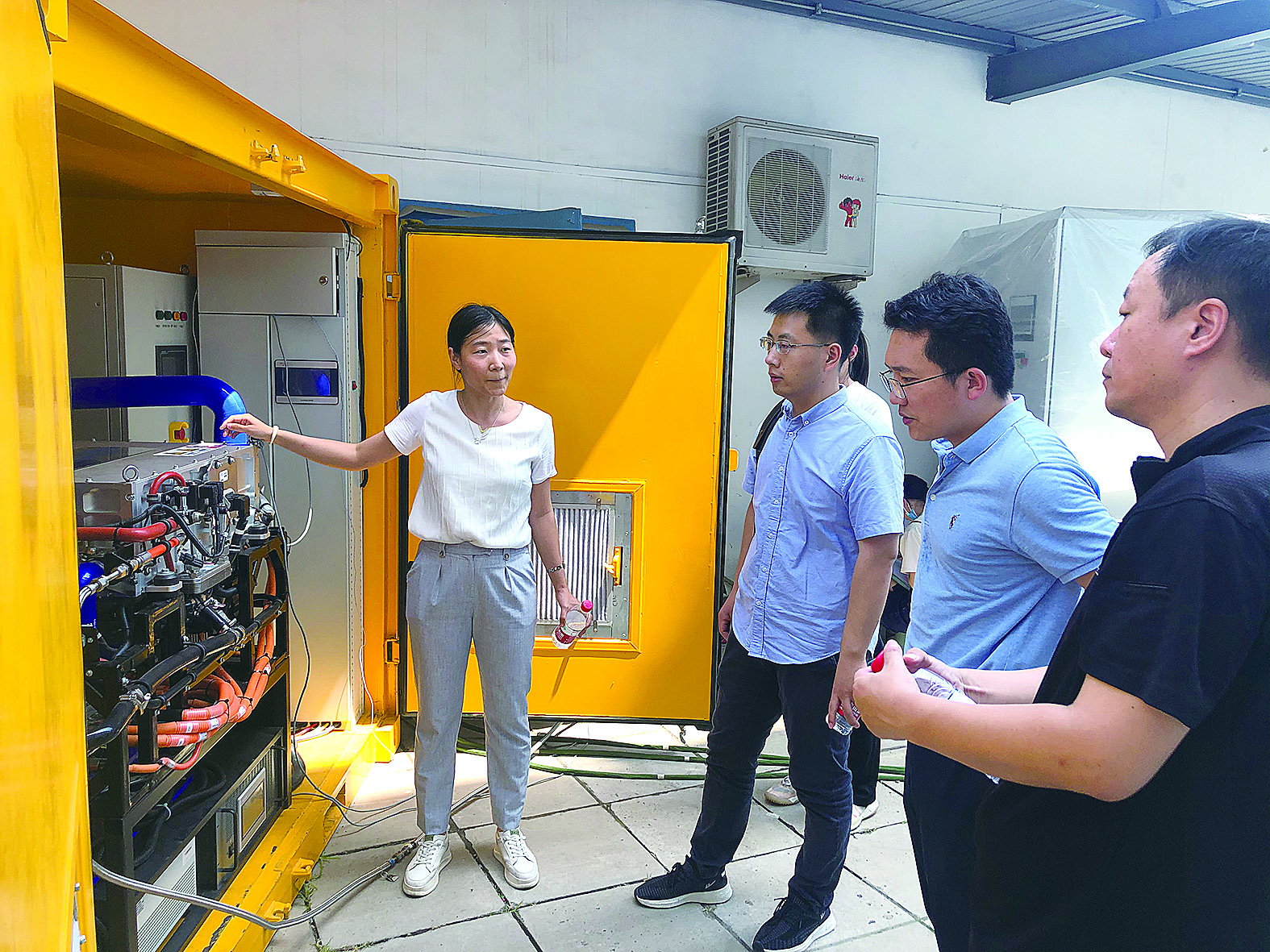 7月14日下午,在株洲市天元区新马动力创新城的一栋厂房里,湘潭大学教授、湖南氢氢松松科技发展有限公司(以下简称氢氢松松)总经理赵才贤向记者介绍起眼前这一“庞然大物”——碱性电解水制氢系统核心组件电解槽。